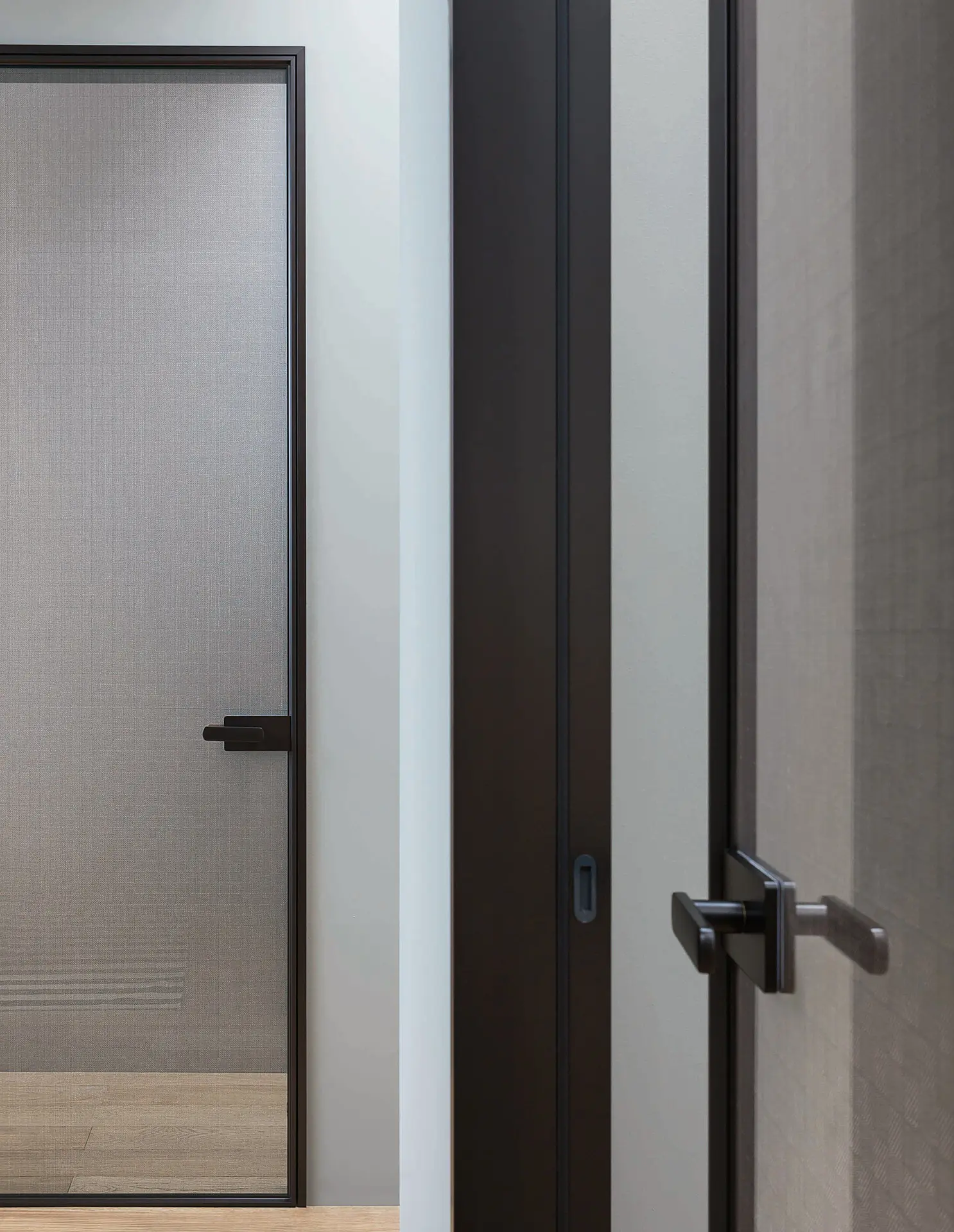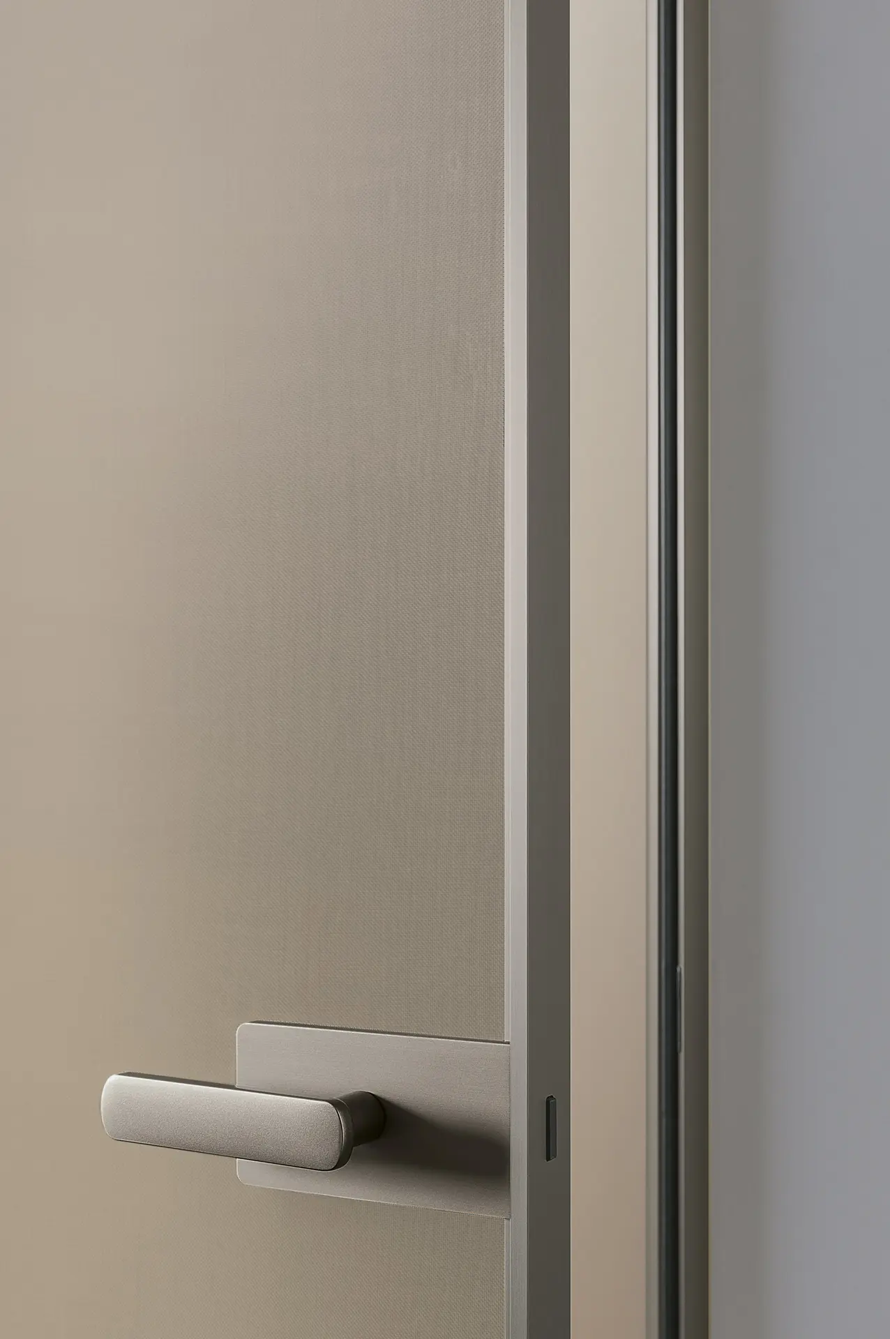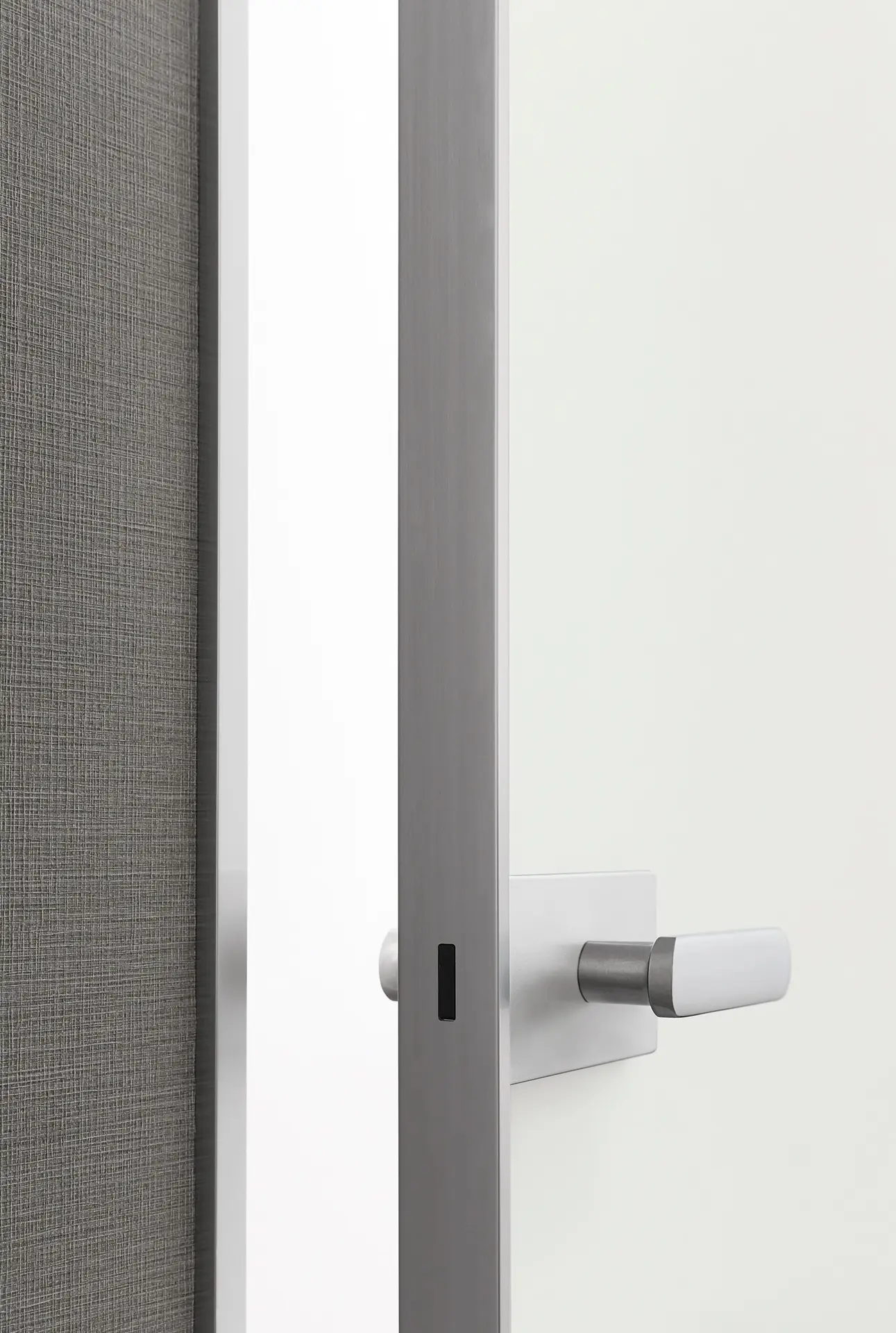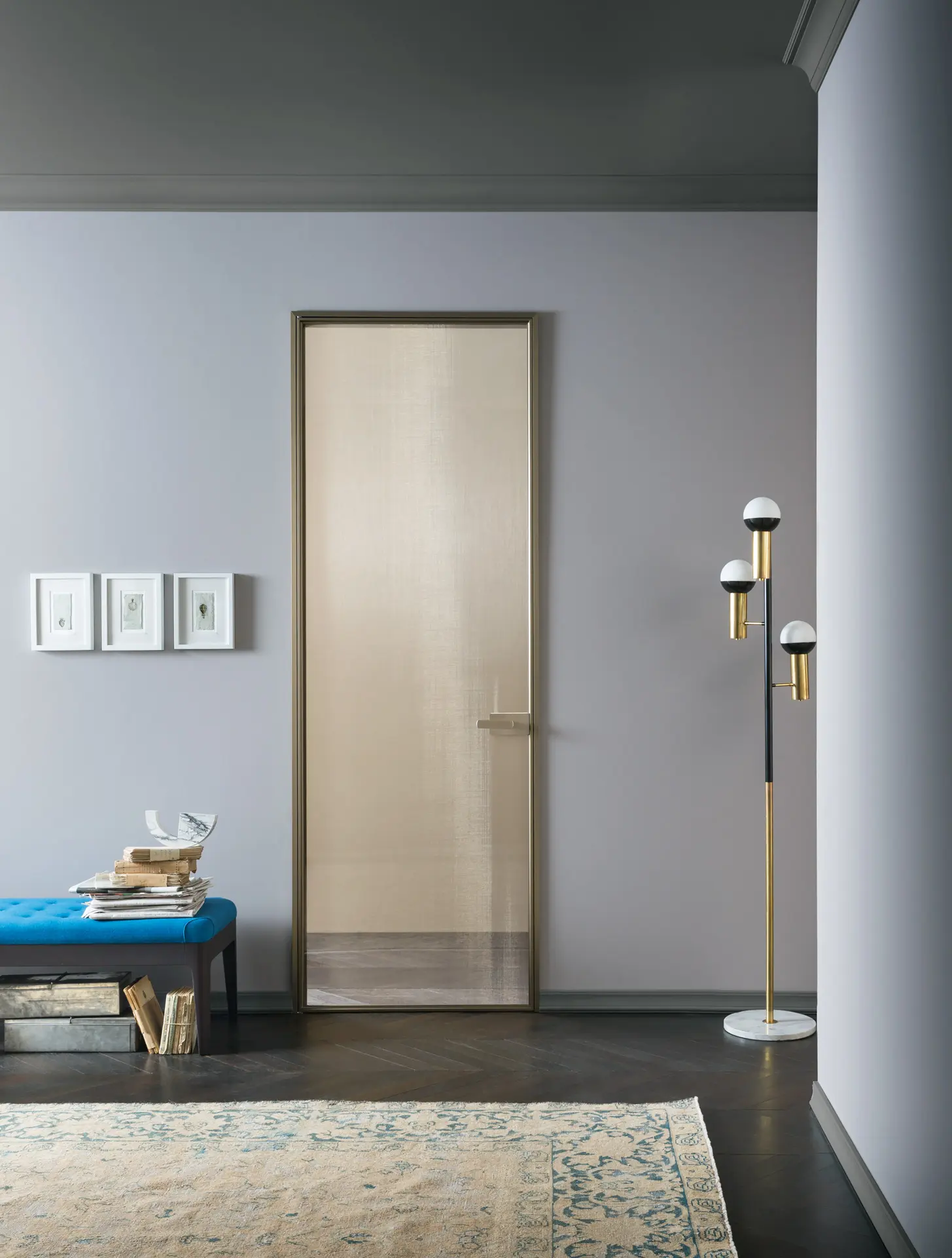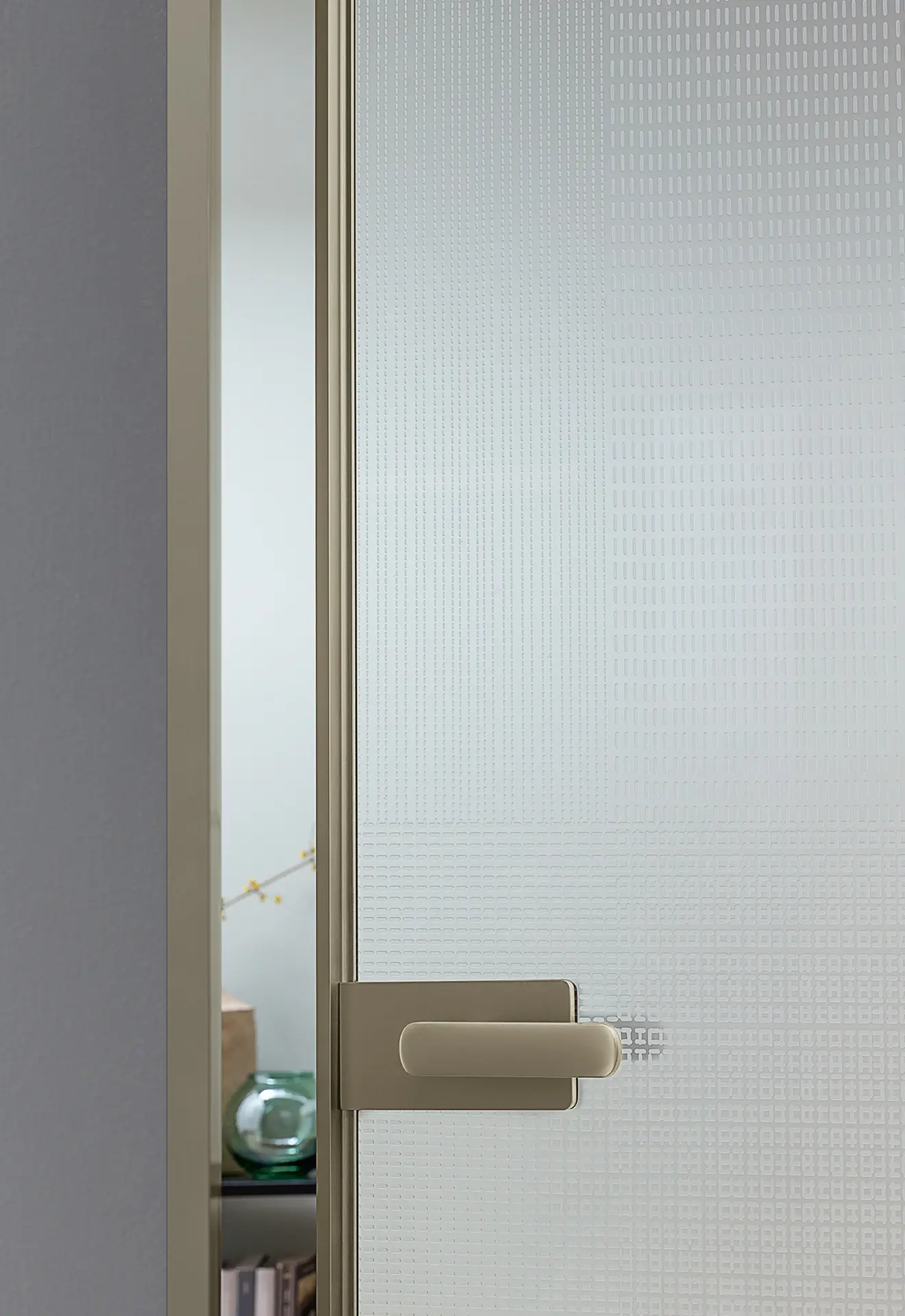 Այս դիզայներական դուռը՝ իր մաքուր, պարզ գծերով, հարմար է բազմազան տարածքների համար՝ շնորհիվ ապակու լույսի և թափանցիկության, ինչպես նաև մետաղի նուրբ նրբագեղության հետ խաղող ձևավորման ընտրության։
