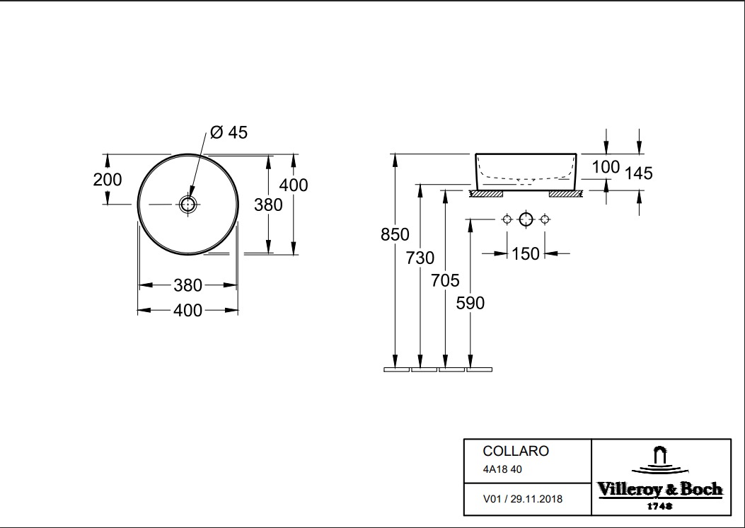 • ՆորCollaro մակերեսի վրա դրվող լվացարան